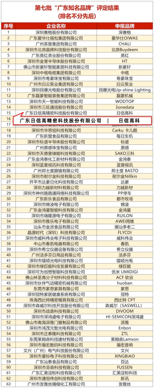 喜报!日信高科荣获“广东知名品牌”,品牌实力备受认可!